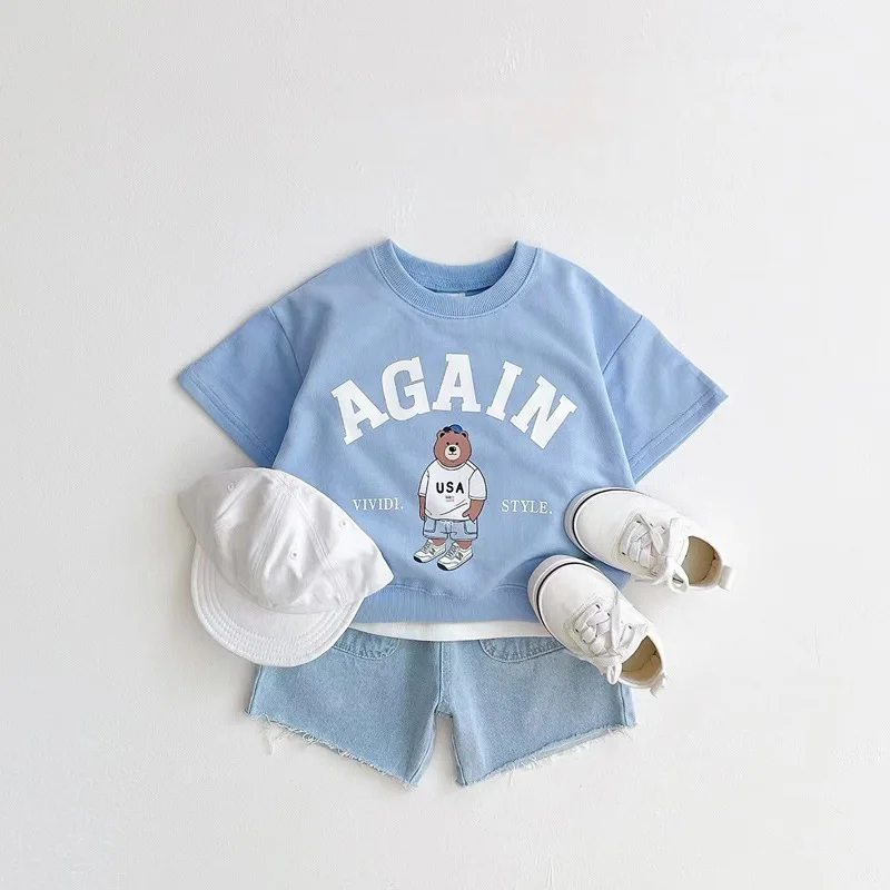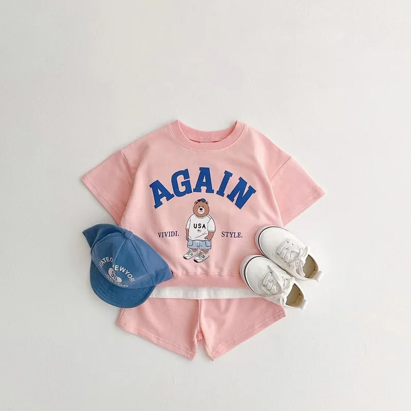 Keep your little one cool and comfortable this summer in our 023 New Baby Short Sleeve Clothes Set. With a fun cartoon print and bold letter design, your child will stand out in this 100% cotton outfit. Includes a shirt and shorts for a complete, stylish look."