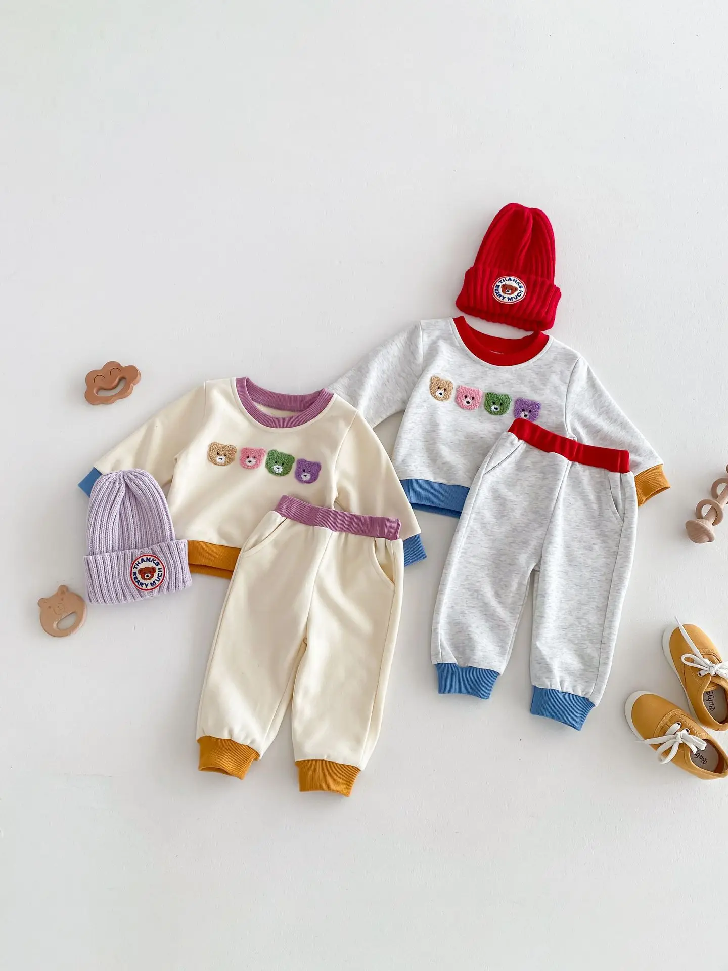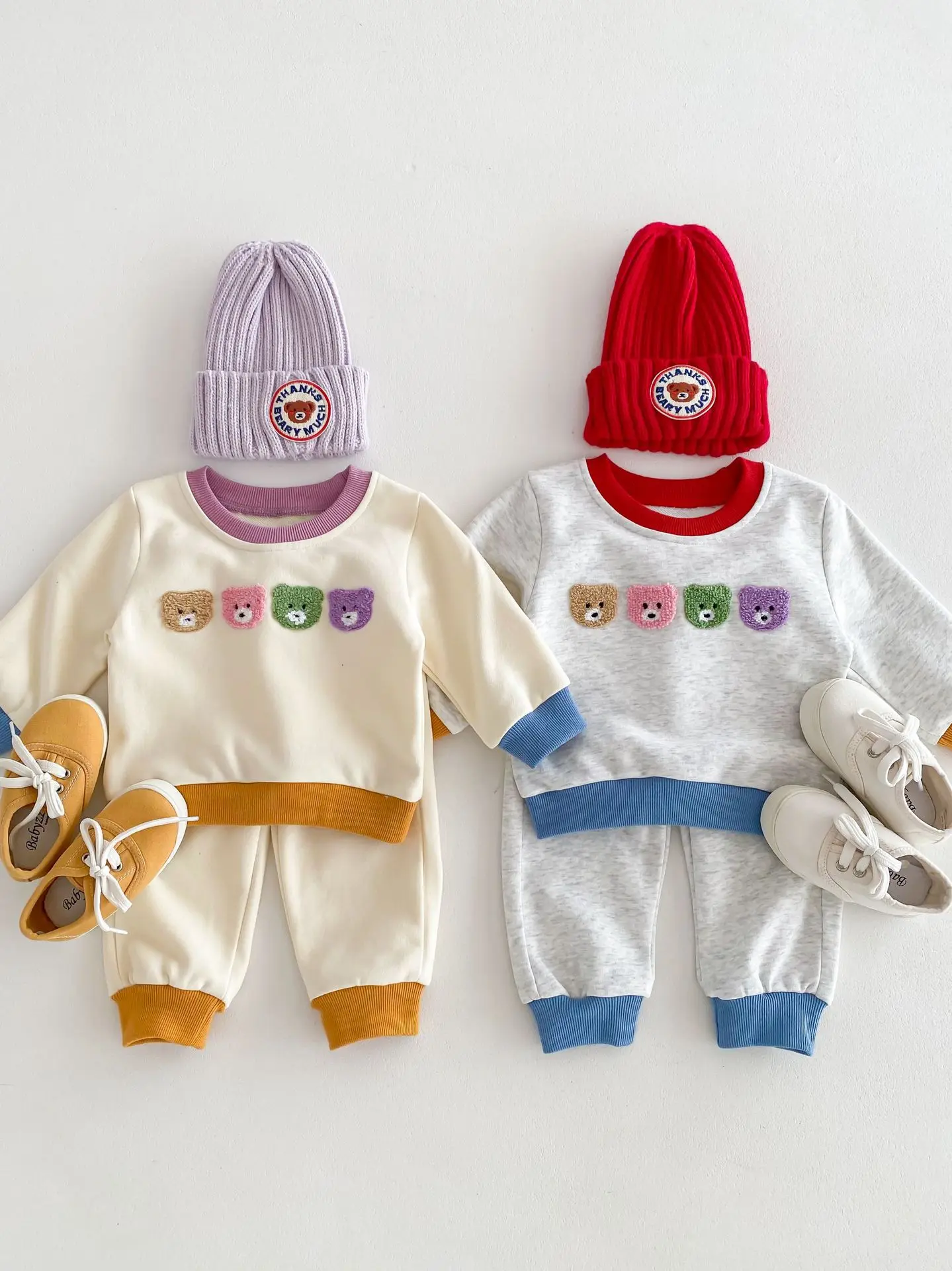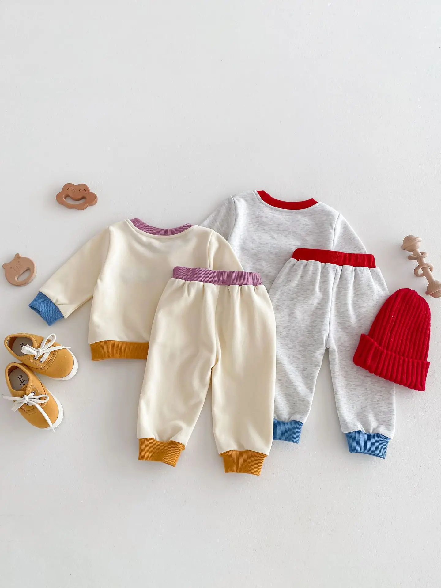 Stay cozy and cute with this 100% cotton sweatshirt and sweatpants set for baby boys and girls. Perfect for playtime or naptime, this set will keep your little one comfortable and stylish. Available in two colors. Cuteness overload!