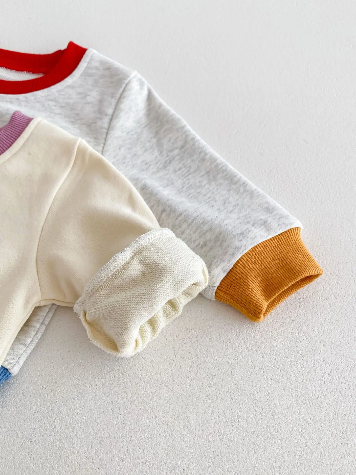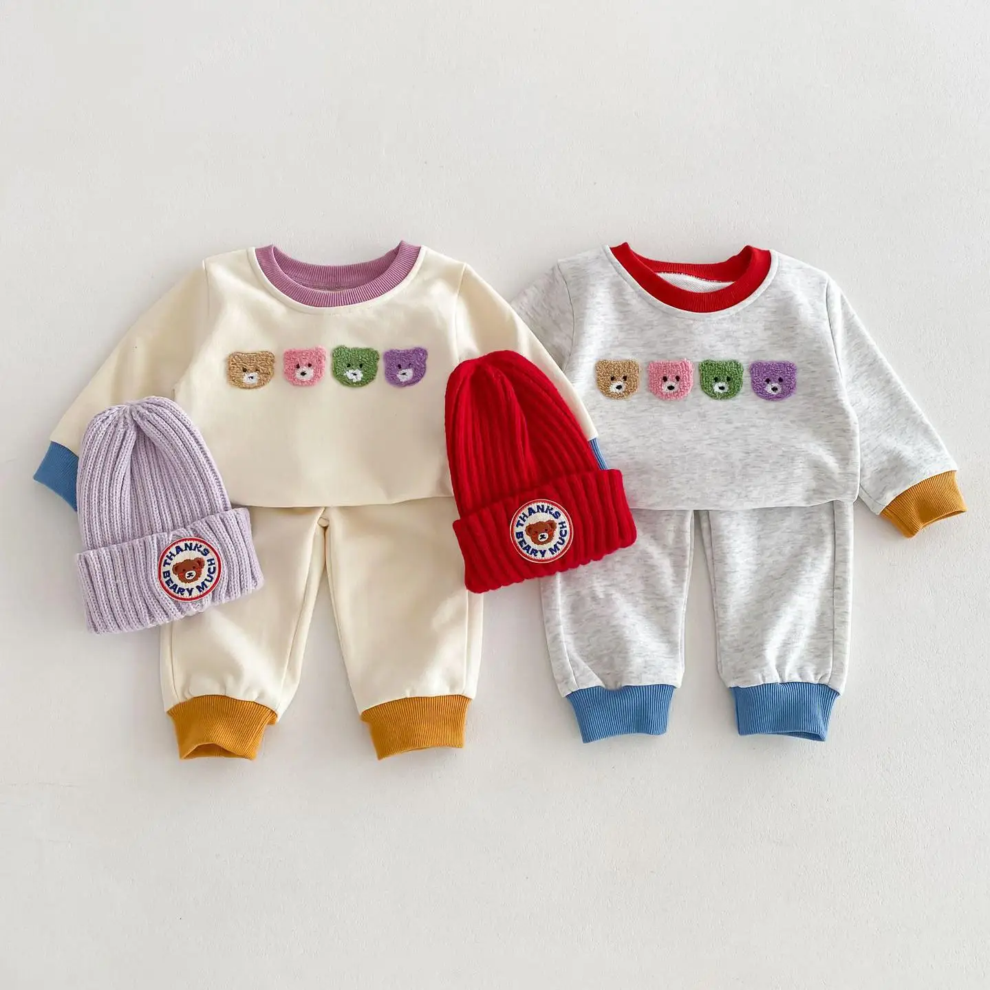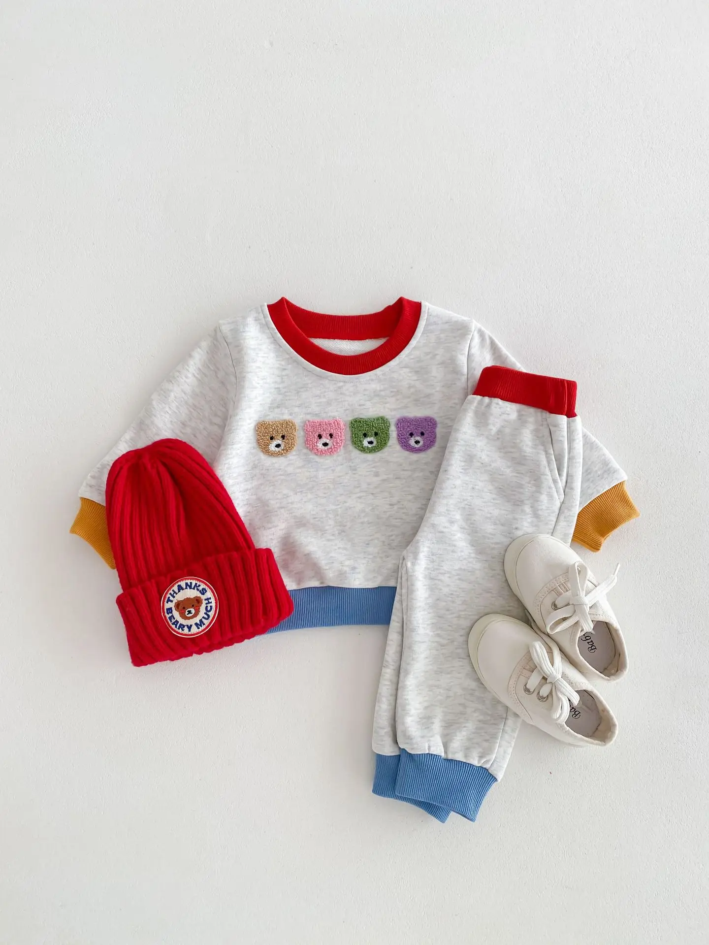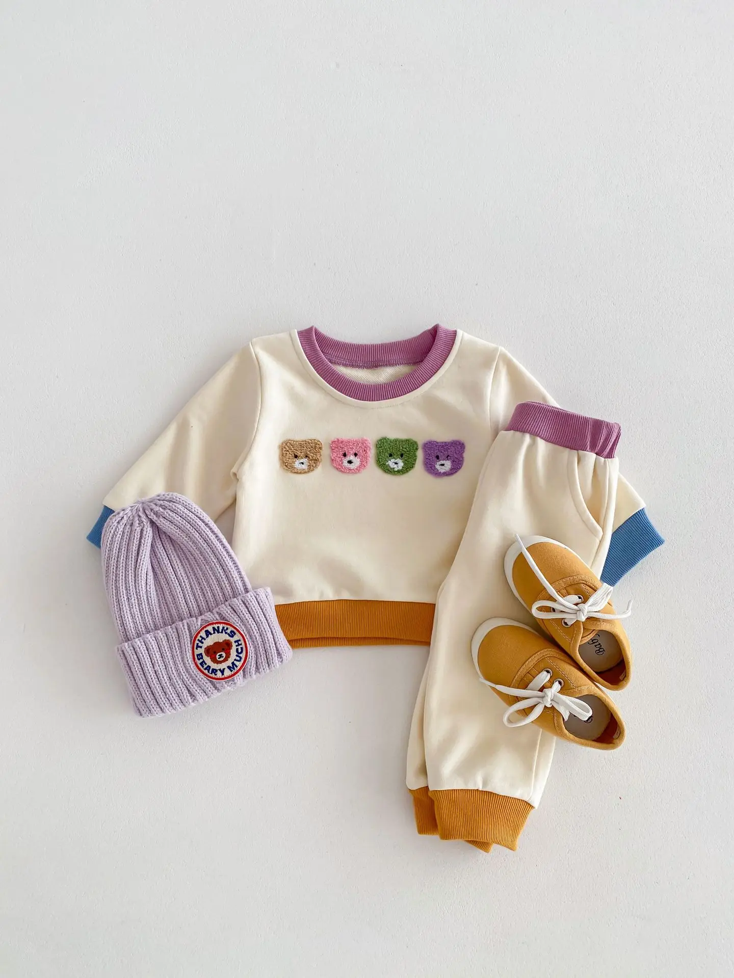 Stay cozy and cute with this 100% cotton sweatshirt and sweatpants set for baby boys and girls. Perfect for playtime or naptime, this set will keep your little one comfortable and stylish. Available in two colors. Cuteness overload!