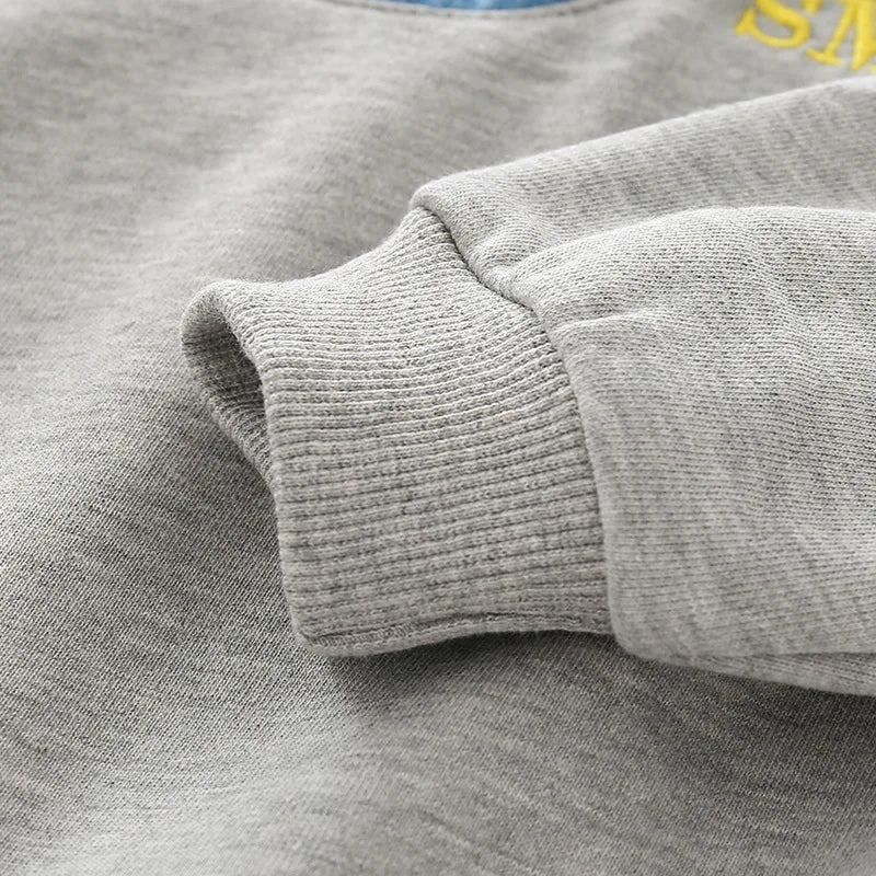 Introducing our Denim Collar Gray Sweatshirt, a stylish and practical addition to any boy's wardrobe. This sweatshirt is made from 100% cotton, providing both comfort and durability. The fashionable denim collar adds a touch of sophistication to the classic grey sweatshirt design. Upgrade your little one's look with this must-have piece.
