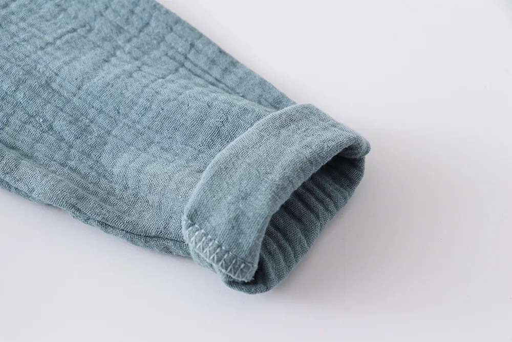 This Set of 100% organic cotton muslin long sleeve t-shirt and pants is designed for boys. keep your little one comfortable and stylish with this eco-frinedly option. perfect for everyday wear and gentle on the skin.