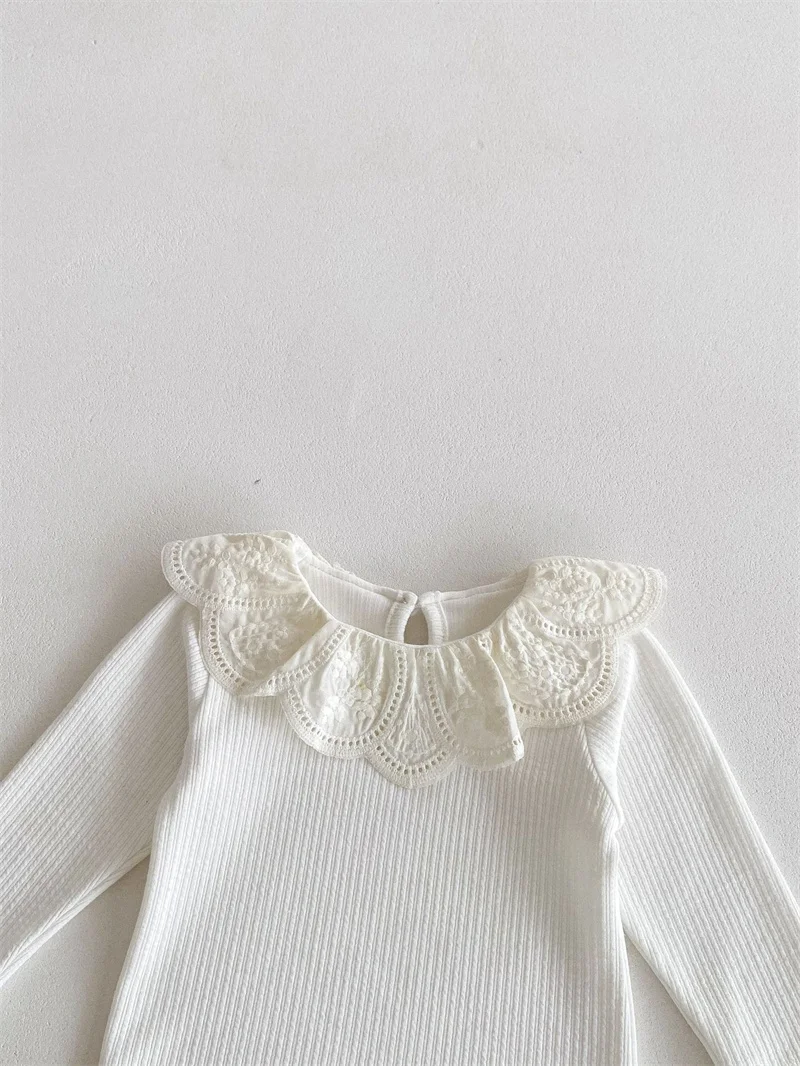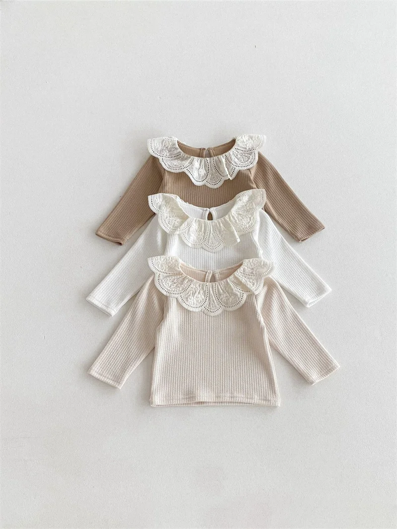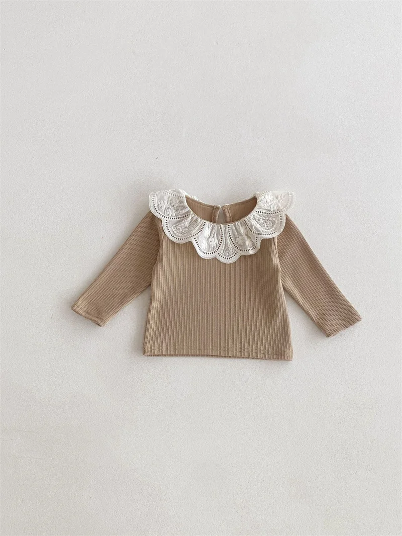 Get ready for some serious style with our Girls Knit Ruffle Collar Top! Made with a mix of soft 80% cotton and durable 20% polyester, this top features a wide lace ruffle collar and comfy knit long sleeves. Available in 3 trendy colors, it's perfect for school, parties, and pairing with skirts or pants. Upgrade your little one's wardrobe with this must-have top!