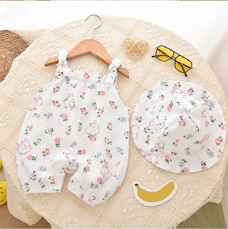 Newborn Baby Muslin Jumpsuit with Hat