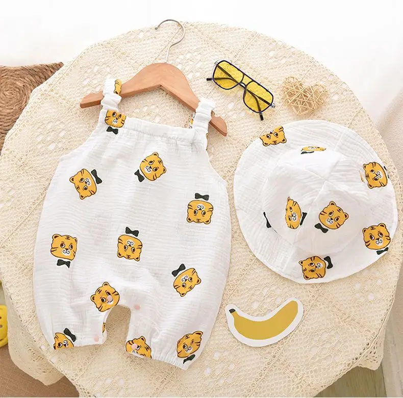 This 100% cotton muslin jumpsuit is perfect for your newborn baby's summer wardrobe. With 8 unique prints and designs to choose from, your little one will be both comfortable and stylish. Just what you need for those hot summer days!