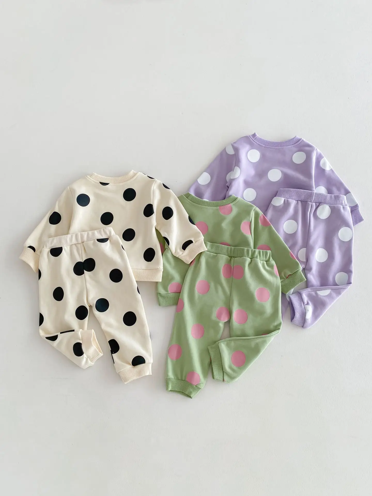 This polka dot sweatshirt and sweatpants set is crafted with 100% cotton for girls! Stay cozy and stylish with this comfortable and versatile outfit. Perfect for everyday wear or lounging around the house. Elevate your wardrobe with this must-have set.