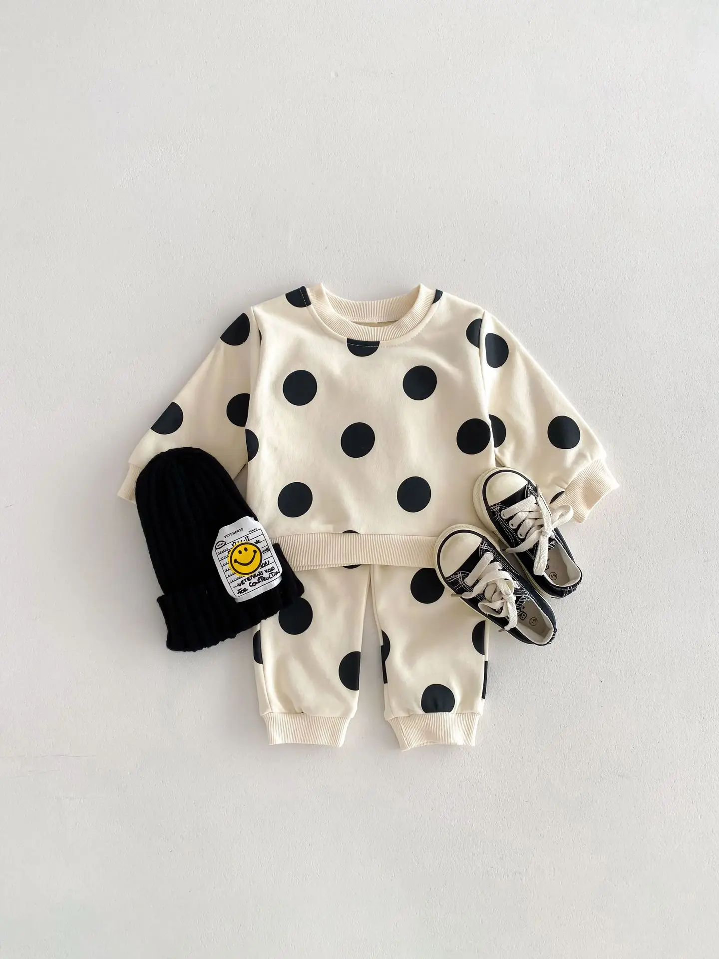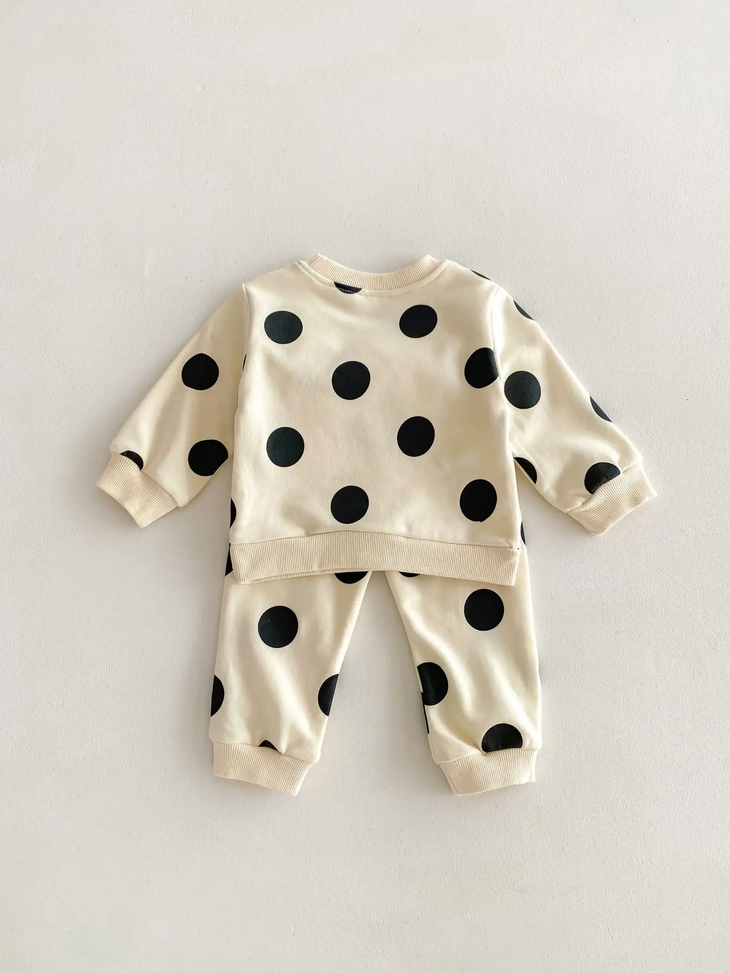Beige Polka Dot Sweatshirt and Sweatpants Set