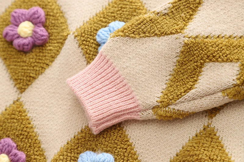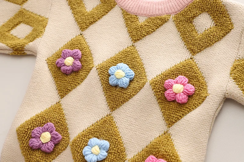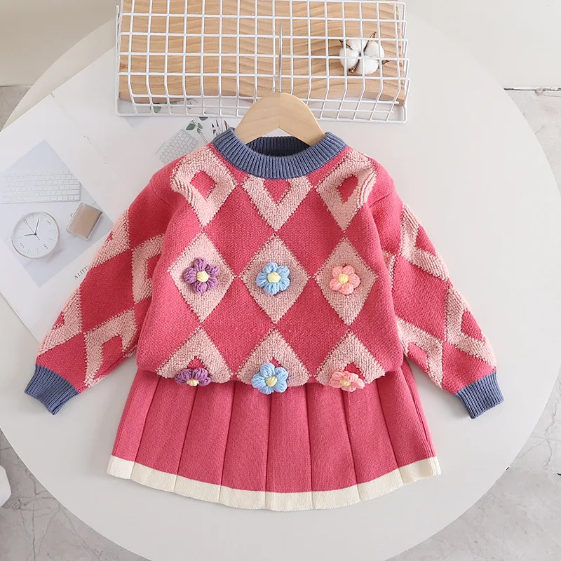 Get ready for sweater weather with this Boucle Knit Sweater and Skirt Set! With a playful diamond shape design featuring cute flowers, this set will surely make a statement. Made with a cozy blend of 80% cotton and 20% wool, it's perfect for fall and winter. Available in pink and brown, it's a great option for school or everyday casual outfits. Stay stylish and warm with this unique set!