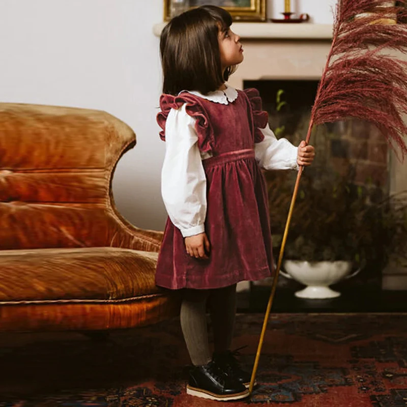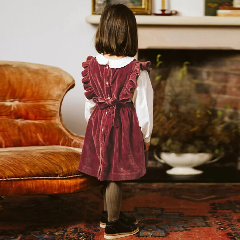Dress your little one in cozy style with our Girls Sleeveless Velvet Vest Dress! Made with a soft cotton-polyester blend, this dress will keep her warm in the cooler months. Plus, the cute buckle detail adds a touch of charm. Perfect for your stylish child!