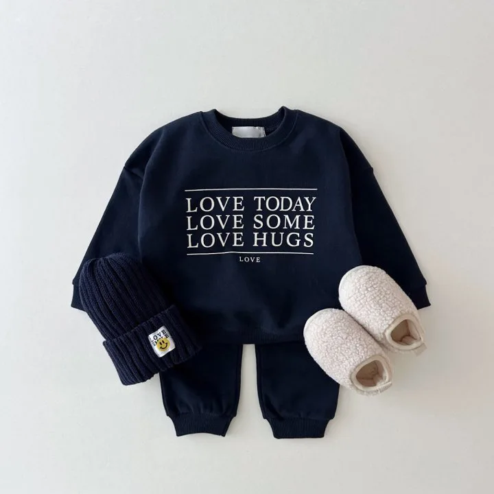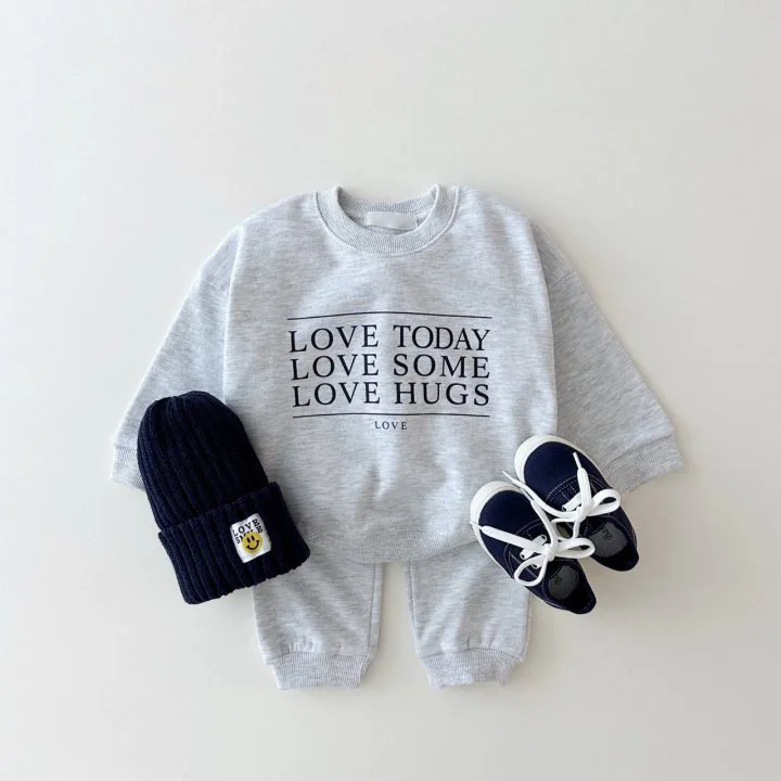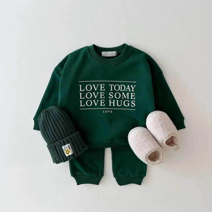 Snuggle up with your little ones in the Love Today Sweatshirt and Sweatpants Set! Made from 95% cotton and 5% polyester, this set is perfect for both boys and girls. Stay comfy and stylish all day long!