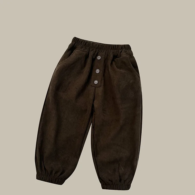 Wrap your little one in comfort and style with our Cozy Corduroy Pants, made from a warm blend of 80% cotton and 20% polyester. Designed for durability and softness, these toddler pants feature a relaxed fit with functional button detail and an elastic waistband for all-day play. Perfect for fall and winter, these unisex corduroy trousers come in rich, neutral tones—ideal for stylish layering. Whether for school, park days, or cozy family outings, these pants are a must-have in every mini wardrobe.
