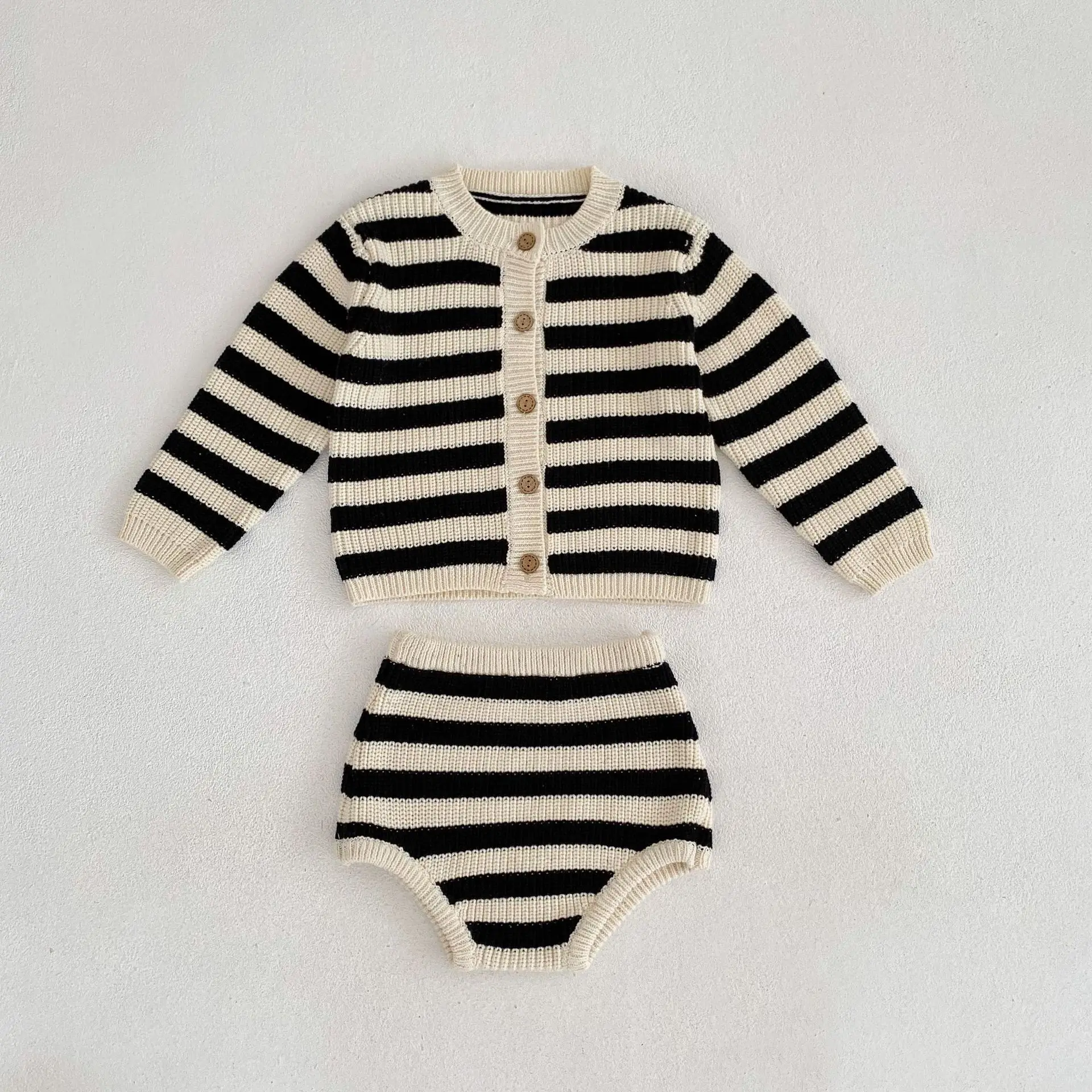 Striped Baby Knit Set – 2-Piece Infant Cardigan and Bloomers Outfit