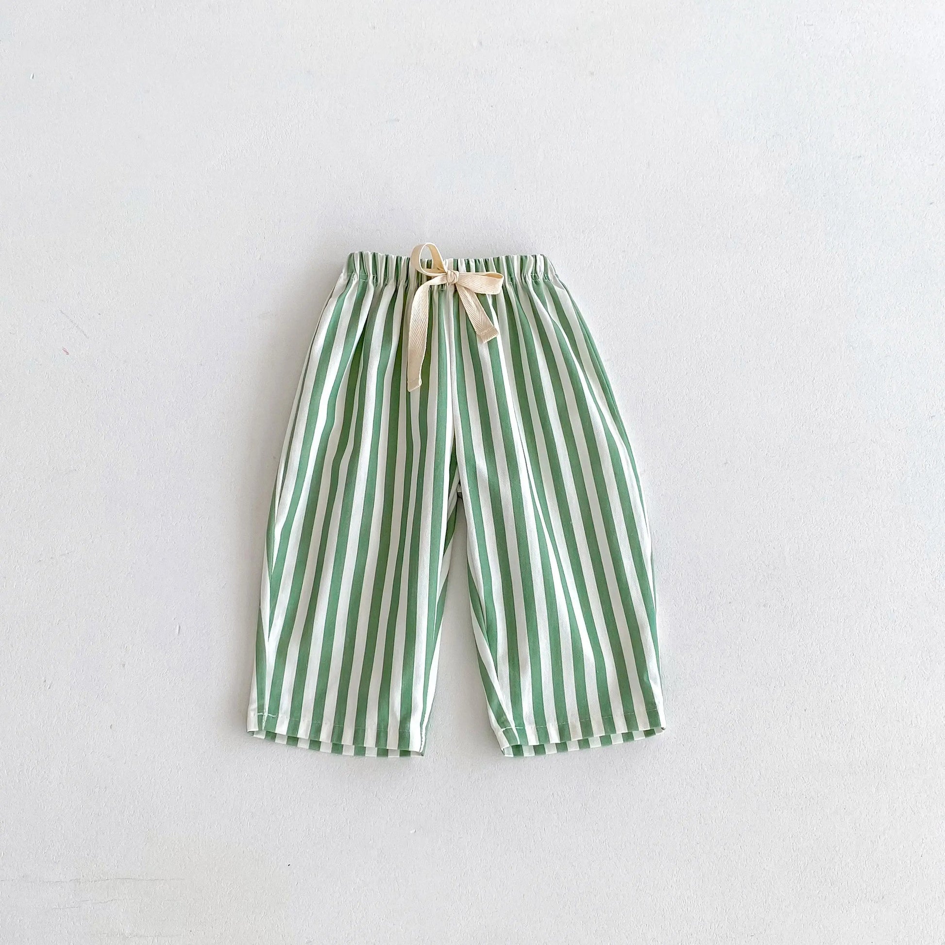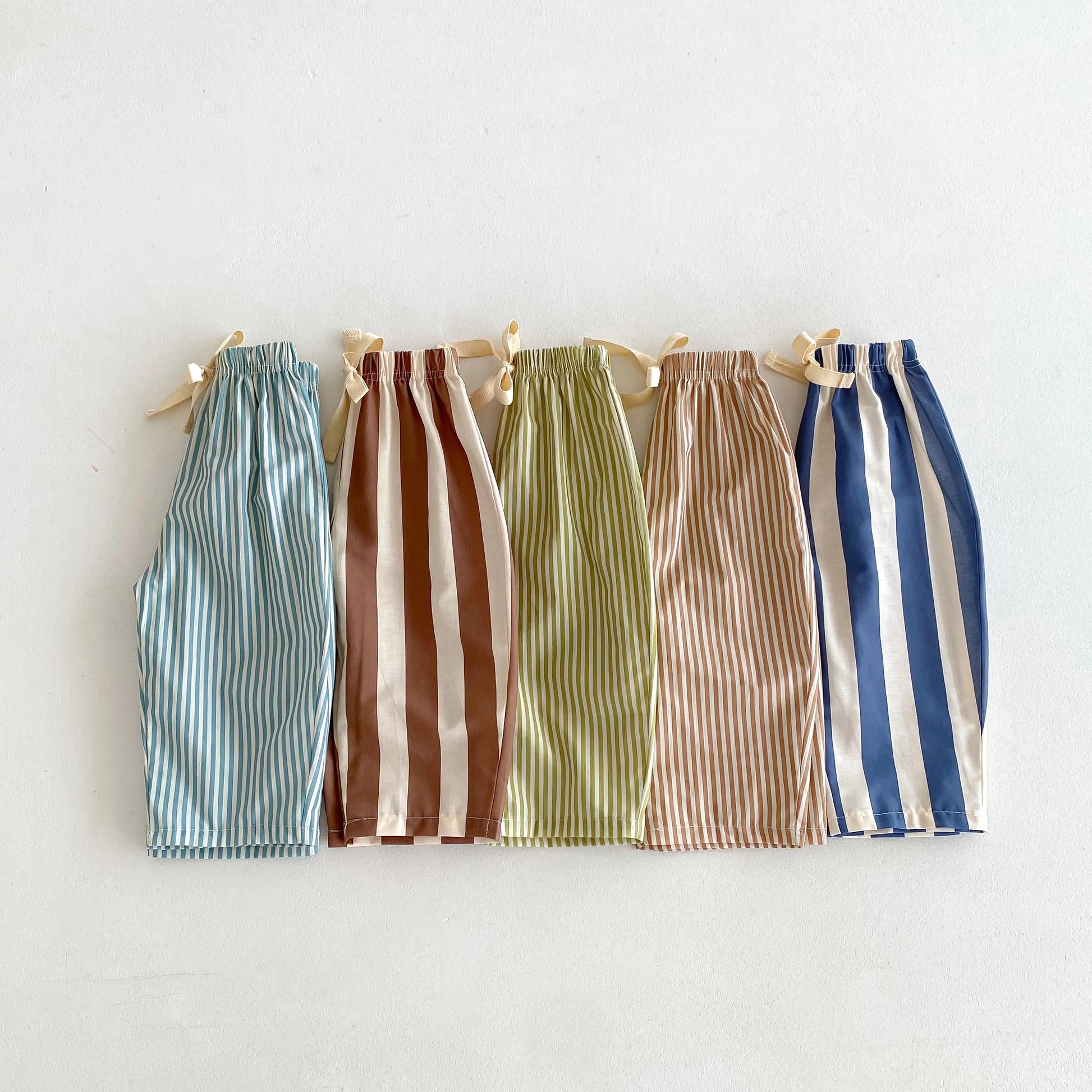 Let your little one move freely and stylishly in our Striped Cotton Drawstring Pants, made from 100% breathable cotton. Featuring a soft, lightweight feel and a variety of fun vertical stripe colors—from soft blue to earthy browns and vibrant greens—these pants are designed for all-day comfort and effortless cool.