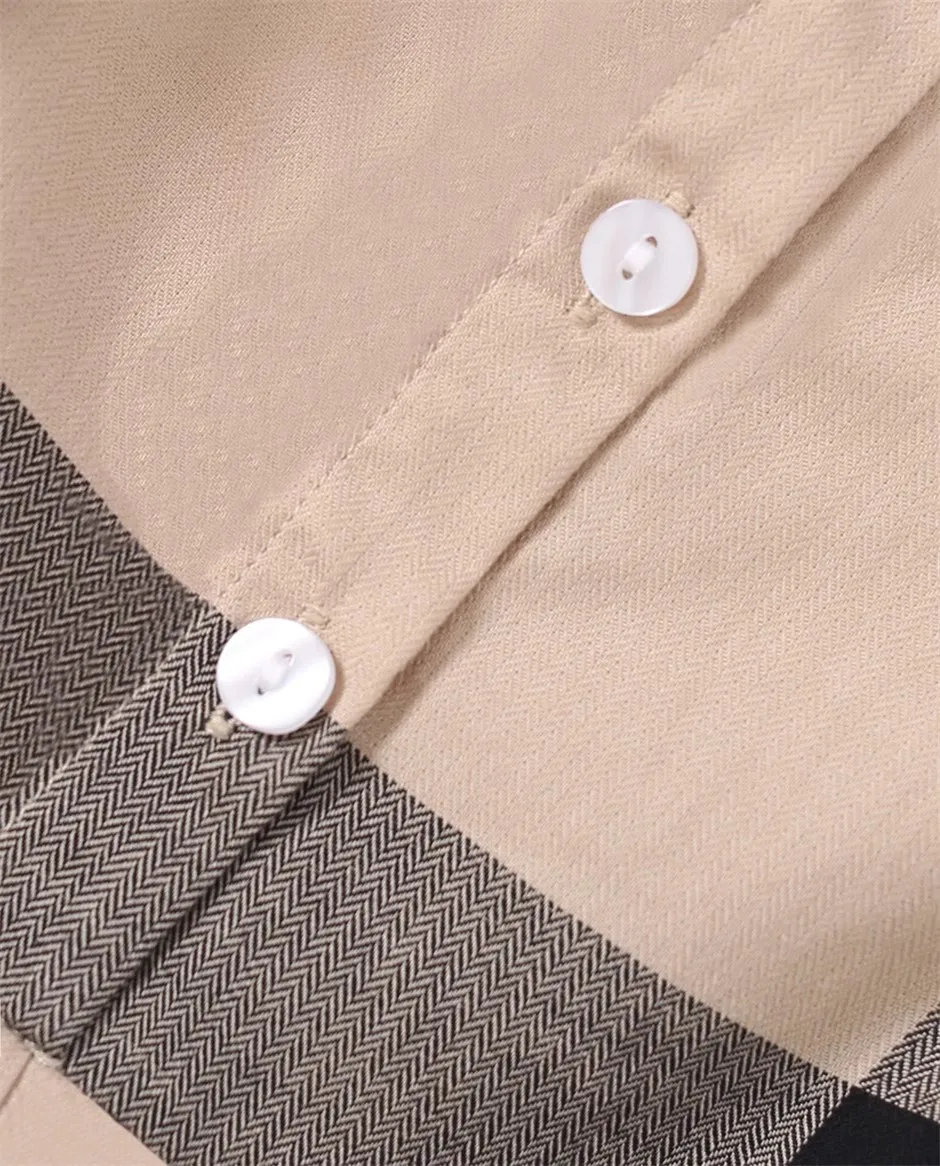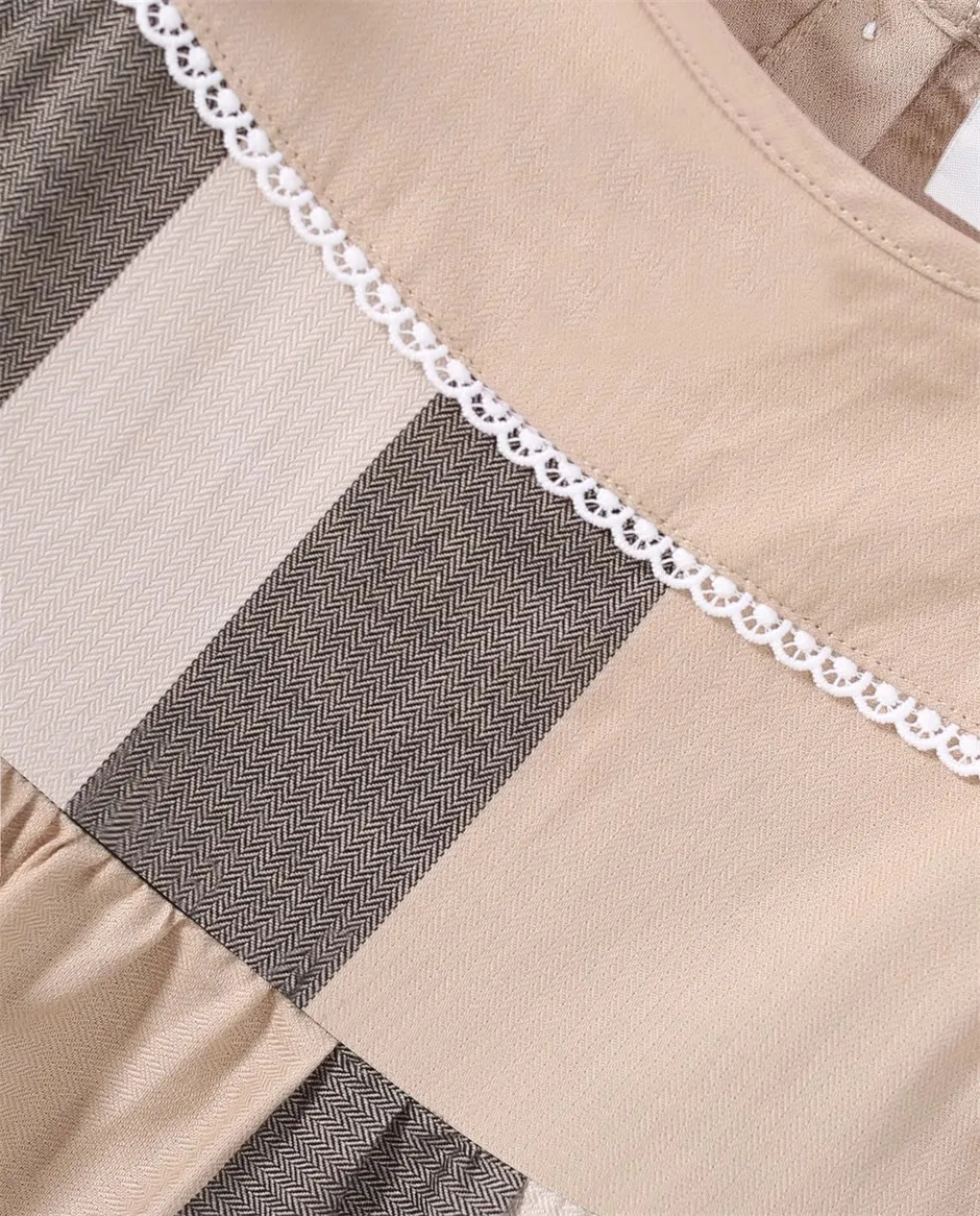 Beige Organic Cotton Plaid Dress