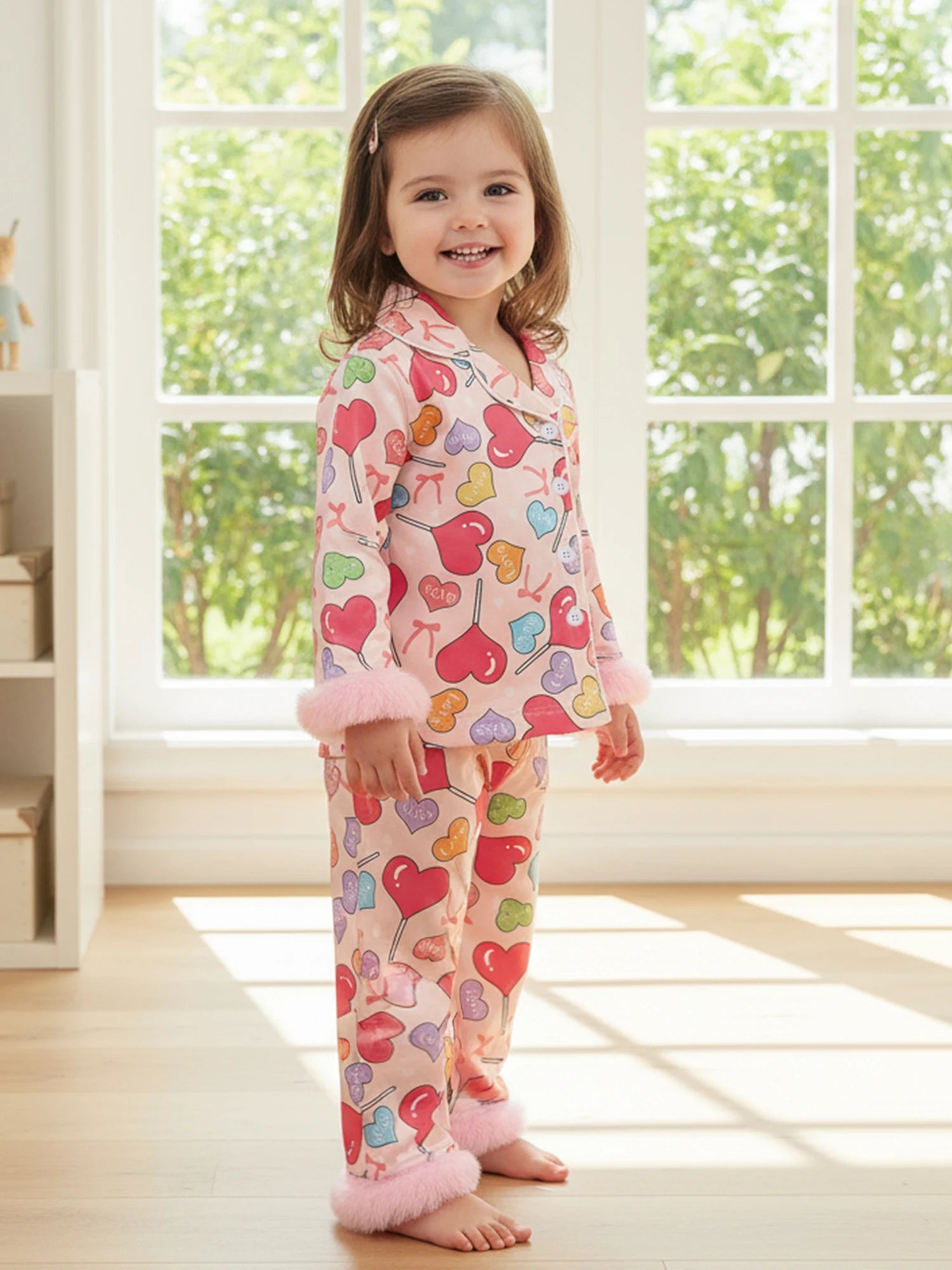 Snuggle up in sweetness with these adorable toddler pajamas featuring an all-over heart print adorned with delicate feather details. Crafted from a cozy blend of 60% cotton and 40% polyester, they're soft against little skin while staying durable through countless washes. Perfect for Valentine's Day or any day your little one wants to feel extra special. These charming PJs make bedtime a breeze and gift-giving even easier!